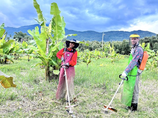 With the arrival of Cyndel and Anna, they took over roselle harvesting and processing while we helped with some of the finishing touches of the rooms in the new homestay, mostly installing curtains and also taking some pictures of the now fully finished rooms. On our last day we got the chance to try out weeding the banana plantation, Jannes was fully immersed in wielding the electric weed trimmer, Shiwen found it a bit too heavy and went for the small sickle to take care of the finer details close to the banana trees. Work throughout the week was split into morning and afternoon sessions, we generally had breakfast around 7 in the morning, lunch around 12:30 and dinner around 7. Uncle Tien prepared all 3 meals and even made them all vegetarian for us! There were all kinds of variations on traditional Chinese cuisine, all of the dishes used mostly self-grown vegetables, ranging from taro to baby corn and others we had never tasted before, like the excellent winged bean. That week must have been the most diverse and healthy diet we have had so far since starting our trip.